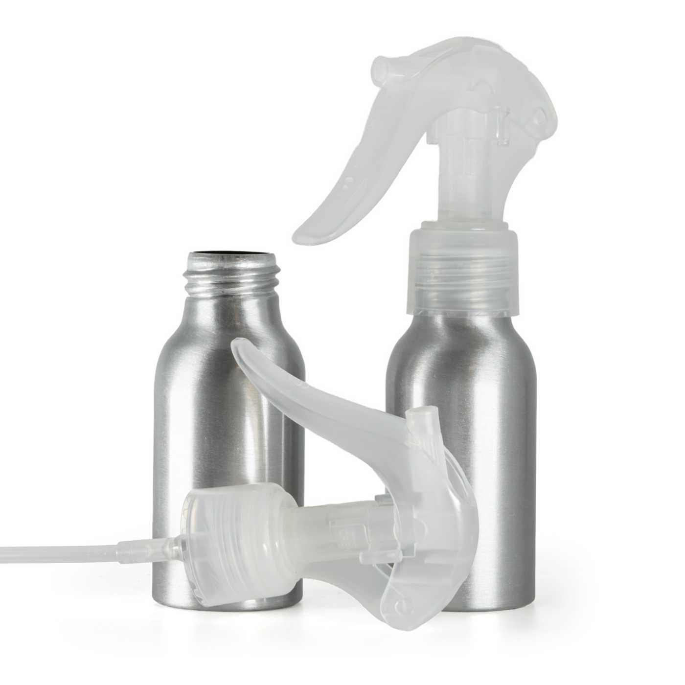 Hliníková fľaša, priehľadný pákový rozprašovač, 50 ml