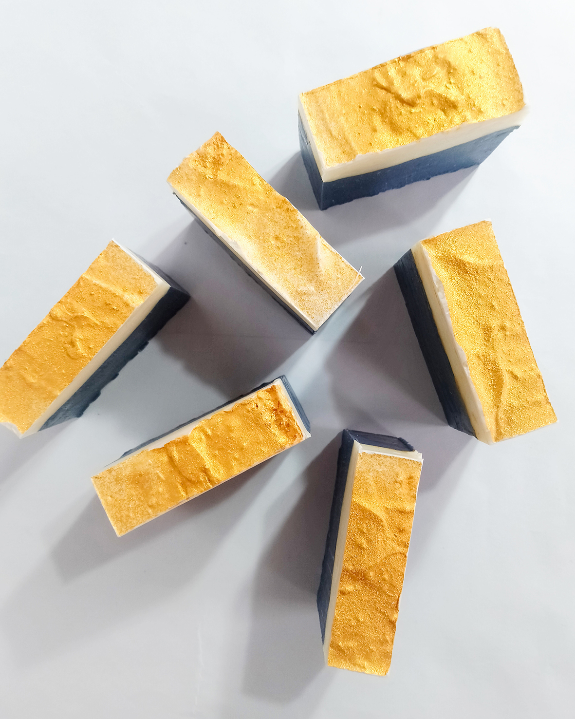 Voľbou číslo jedna pri farbení mydla sú mica prášky. Nielenže sa skvelo lesknú, ale sú aj stabilnév prítomnosti mydla, držia farbu a možno ich ľubovoľne kombinovať. Okrem mica práškov však môžete siahnuť po kozmetických glitroch či ich úplne vynechať.