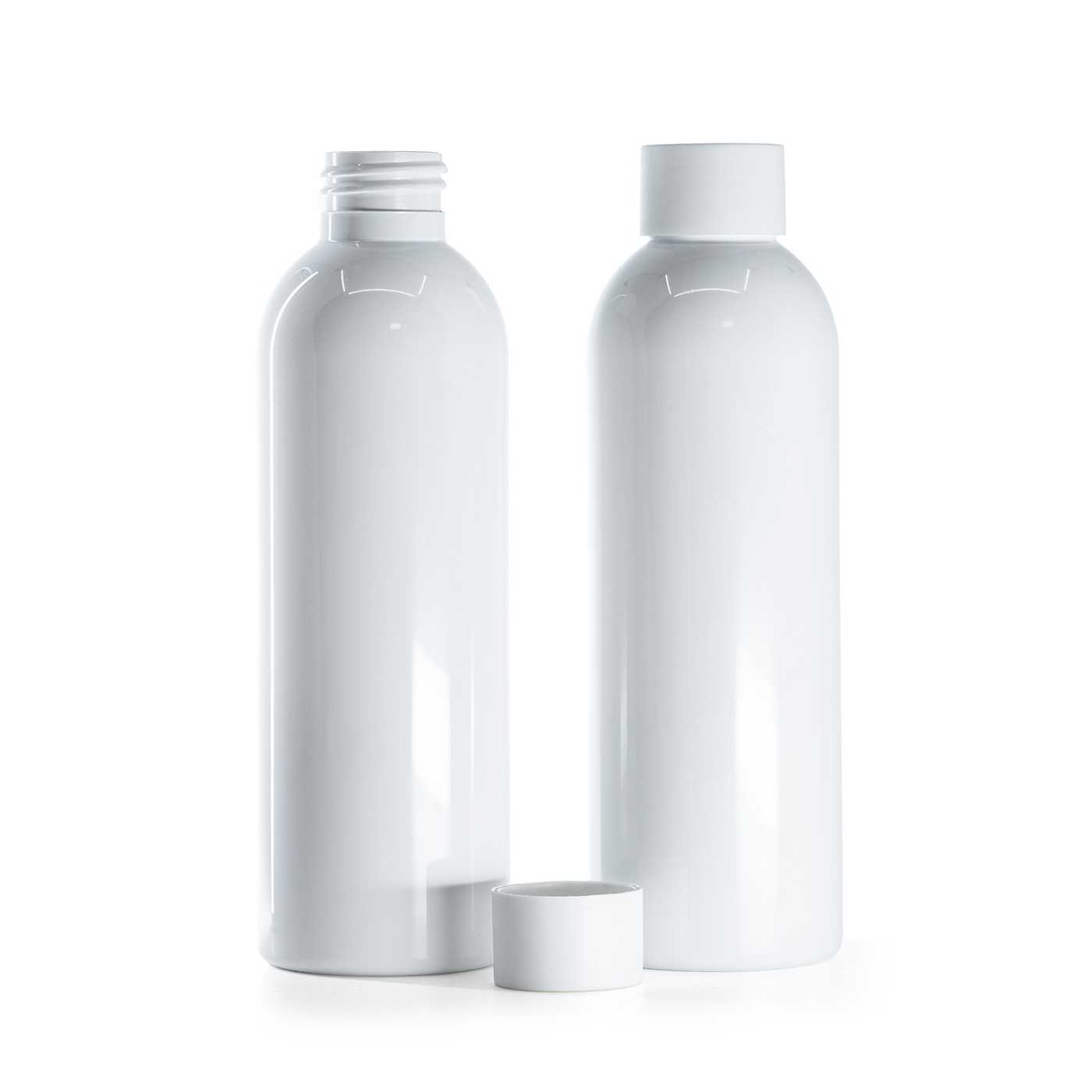 Plastová fľaštička s bielym matným uzáverom predstavuje praktický a ľahký obal vhodný pre rôzne tekuté aj gélové formulácie. Vďaka precíznemu spracovaniu z plastu s hladkým povrchom umožňuje jednoduché plnenie, bezpečné uzatvorenie a komfortné používanie v domácej výrobe aj v menšej remeselnej výrobe kozmetiky.