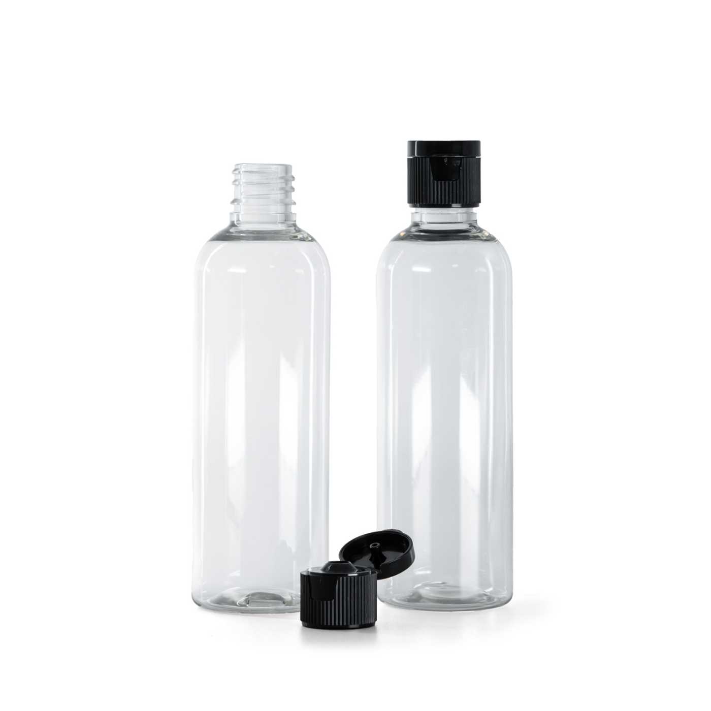 Plastová fľaša priehľadná, plastový vrchnák, flip top, čierny, 18 mm, 100 ml