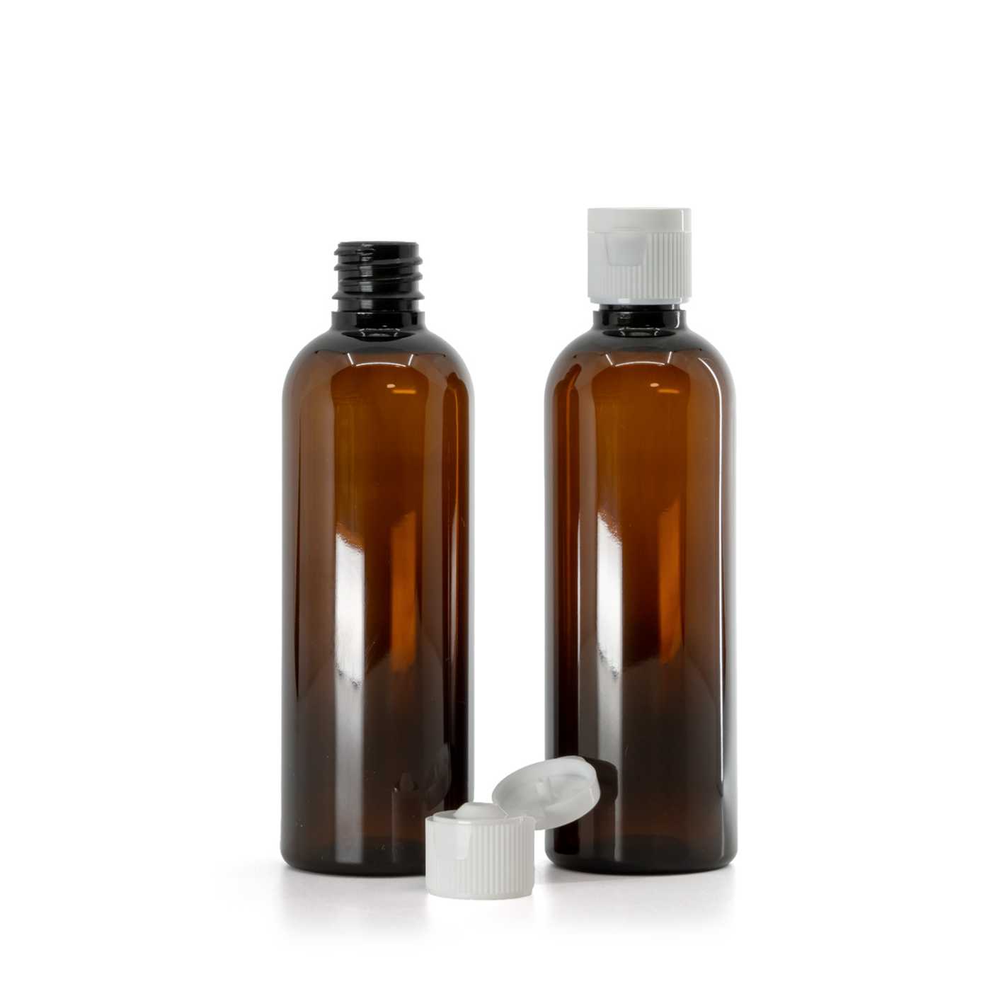 Plastová fľaška, liekovka, hnedá, 18 mm, flip top, biely, 100 ml