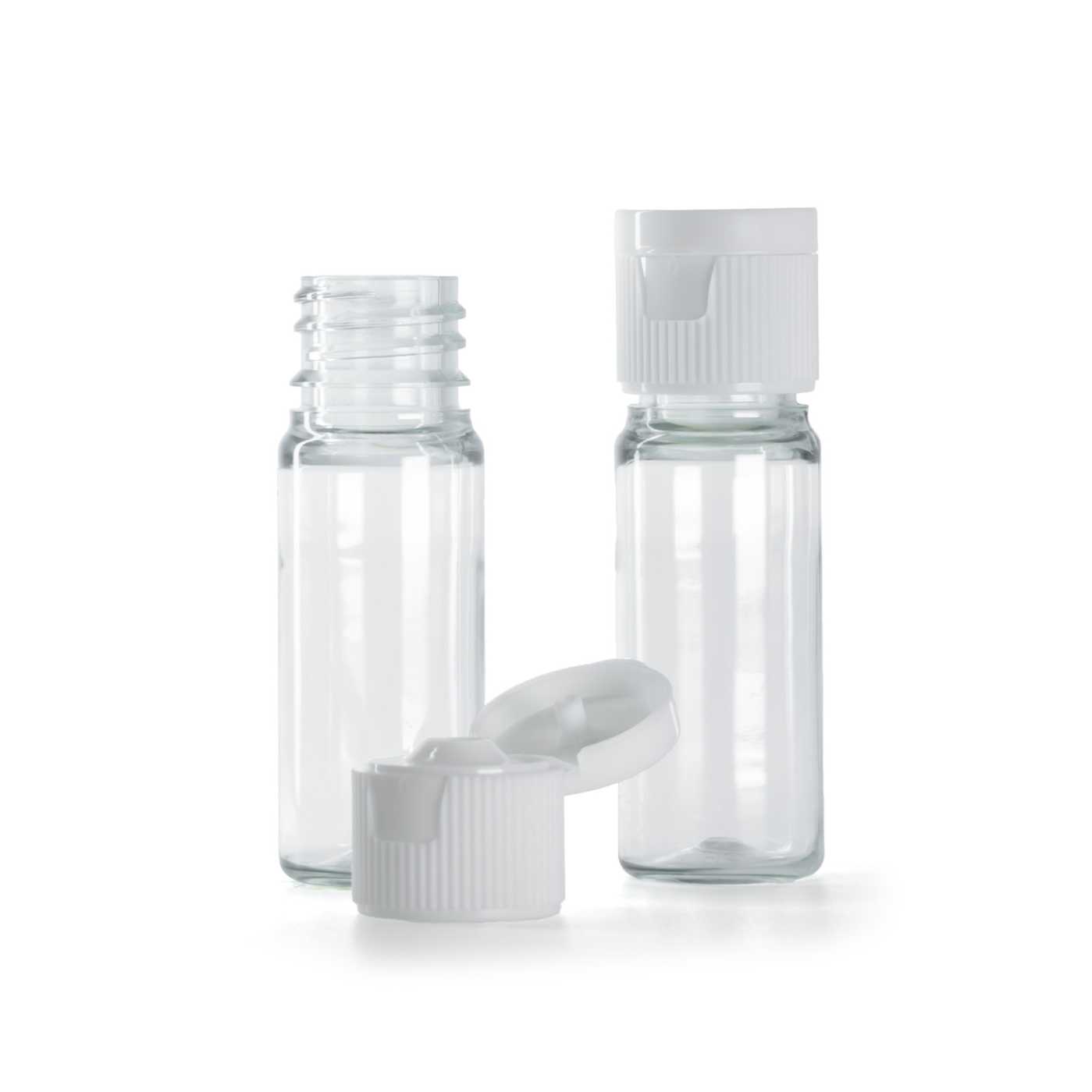 Plastová fľaška, liekovka, priehľadná, 18 mm, flip top, biely, 10 ml