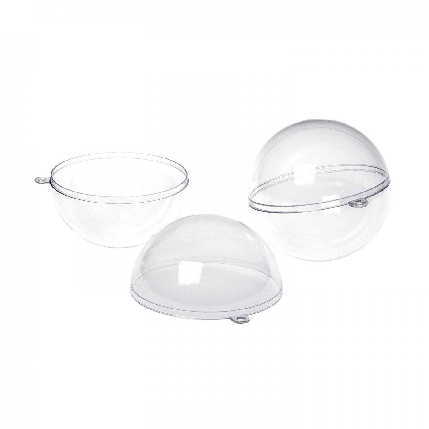 Plastová forma v tvare gule vhodná na tvarovanie šumivých bômb do kúpeľa alebo na výrobu dekorácií. Dve polovice formy držia spojené.