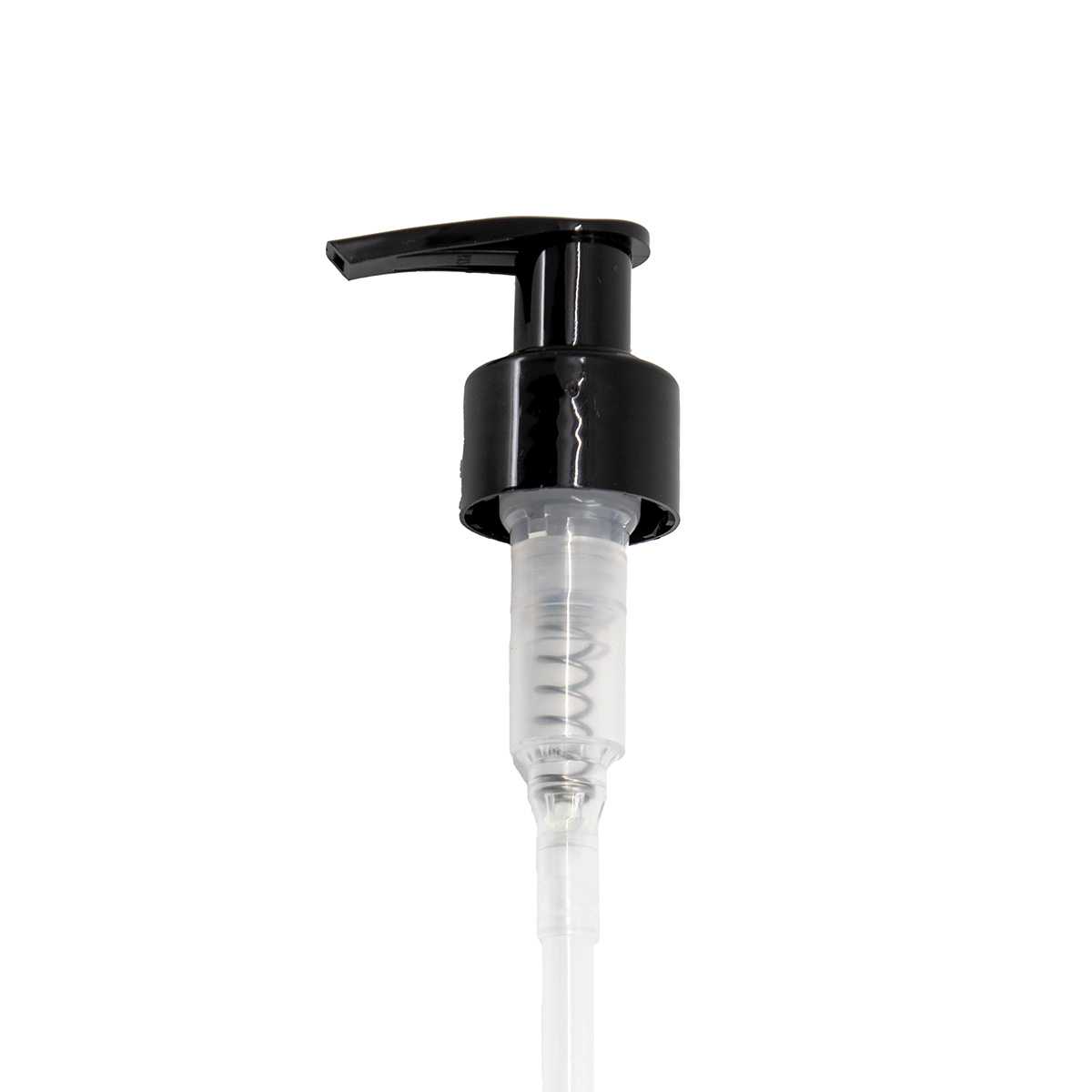 Čierna plastová pumpička na emulzie, telové mlieka a iné viskózne tekutiny.Vhodná na fľaše s priemerom hrdla 24 mm.