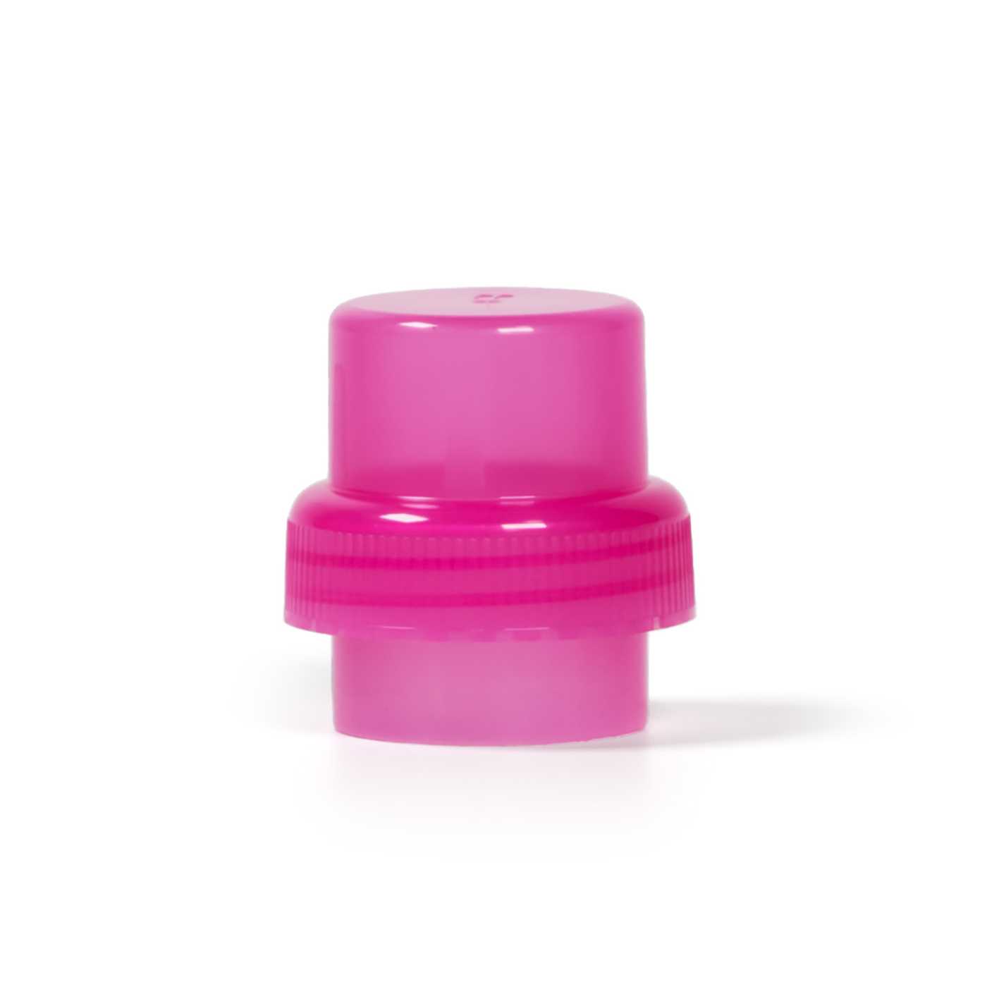 Ružový priehľadný plastový vrchnák určený k 1,5 l fľaši na aviváž.