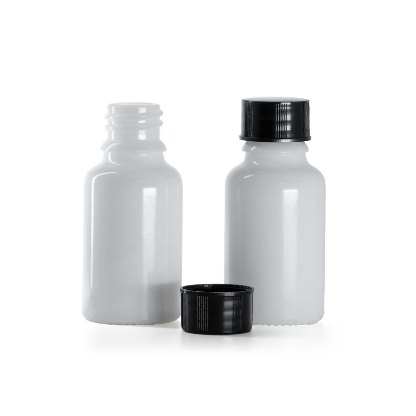Sklenená biela fľaška, tzv. liekovka, je vyrobená z hrubého skla. Slúži na uchovávanie tekutín.Objem: 15 ml Celkový objem: 19 mlVýška fľašky: 63 mmPriemer fľaš... celý popis