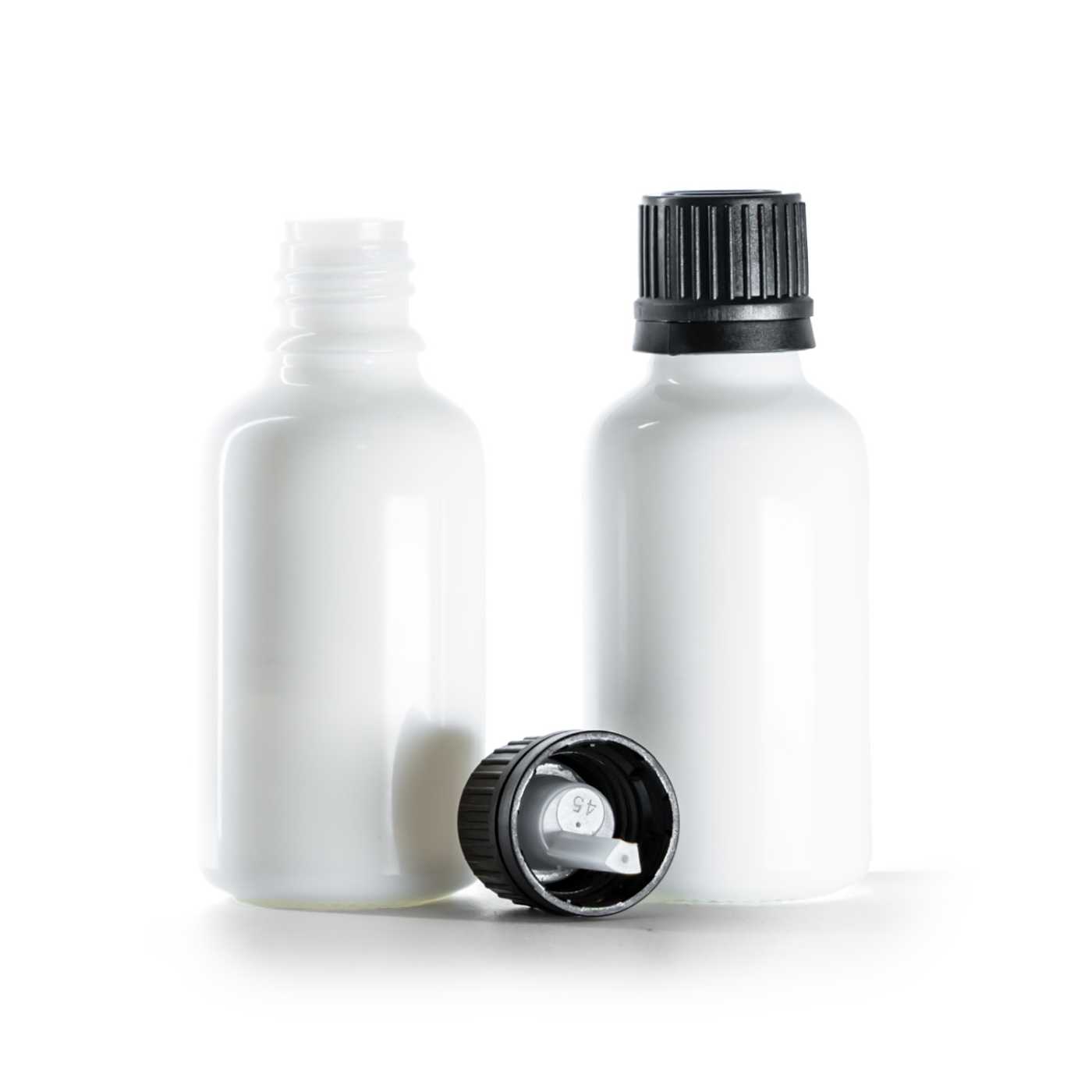 Sklenená liekovka s bielym povrchom a čiernym vrchnákom s kvapatkom je profesionálny obal vhodný na presné dávkovanie kvapiek a ochranu citlivých tekutých prípravkov. Nepriehľadné biele sklo pomáha chrániť obsah pred svetlom a podporuje stabilitu receptúry, vďaka čomu je fľaštička ideálna pre koncentráty, sérá aj aromatické zmesi. Integrované kvapátko umožňuje kontrolované, hygienické a opakovateľné dávkovanie bez zbytočného kontaktu s obsahom a minimalizuje riziko kontaminácie.