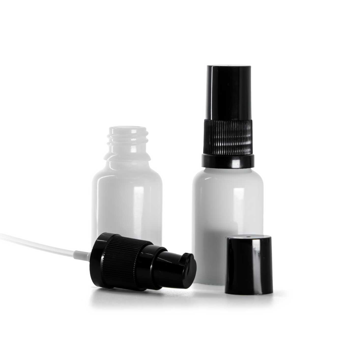 Čierny plastový dávkovač krémov s čiernym nepriehľadným uzáverom. Je vhodný na všetky naše sklenené liekovky.