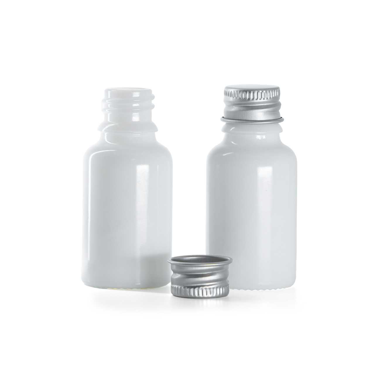 Sklenená biela fľaška, tzv. liekovka, je vyrobená z hrubého skla. Slúži na uchovávanie tekutín.Objem: 15 ml Celkový objem: 19 mlVýška fľašky: 63 mmPriemer fľaš... celý popis