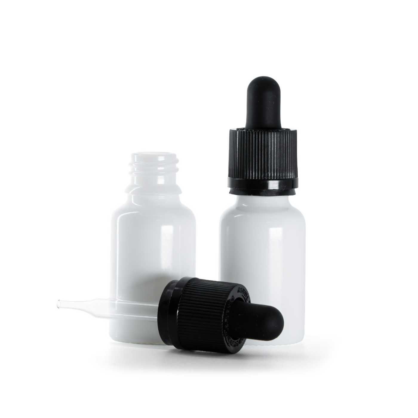 Sklenená fľaška, liekovka, biela, pipeta s poistkou, 15 ml