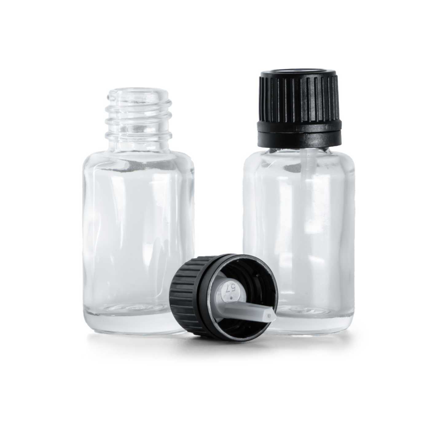 Sklenená fľaška je vyrobená z hrubého priehľadného skla s hrubým dnom. Slúži na uchovávanie tekutín.Objem: 12 ml, celkový objem 17 mlVýška fľašky: 61,6 mmPriemer fľašky: 29 mmHrdlo: 18/415
