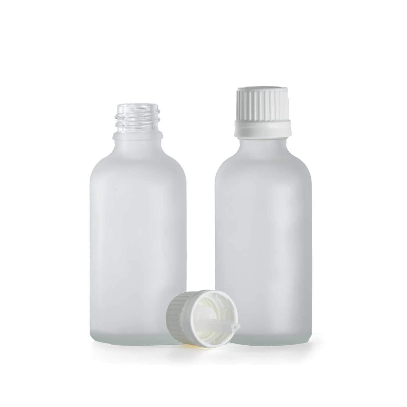 Sklenená fľaška je vyrobená z hrubého priehľadného skla, ktoré je z vonkajšej strany brúsené. Slúži na uchovávanie tekutín.Objem: 50 ml, celkový objem 55 mlVýška fľašky: 78,8 mmPriemer fľašky: 33 mmHrdlo: 18/410
