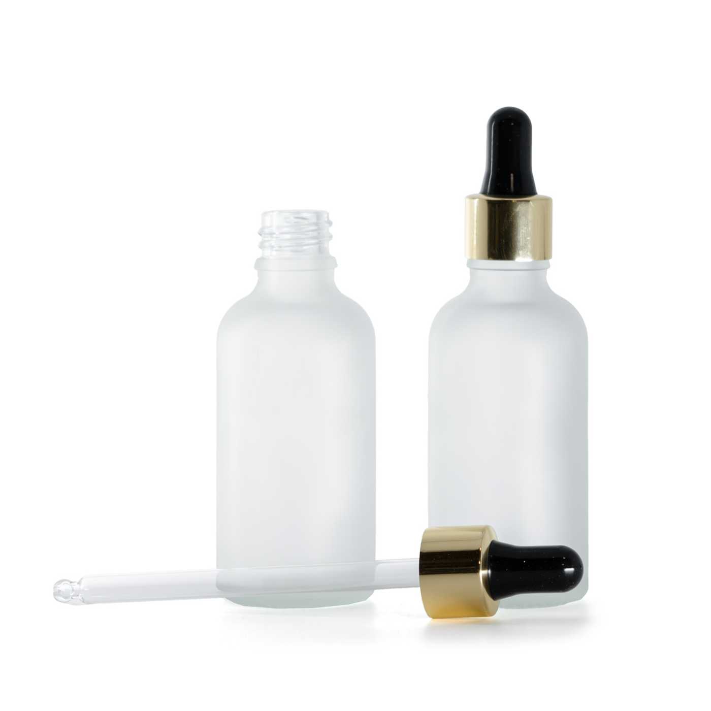 Sklenená fľaška, priehľadná mliečna, čierno-zlaté kvapátko, 50 ml