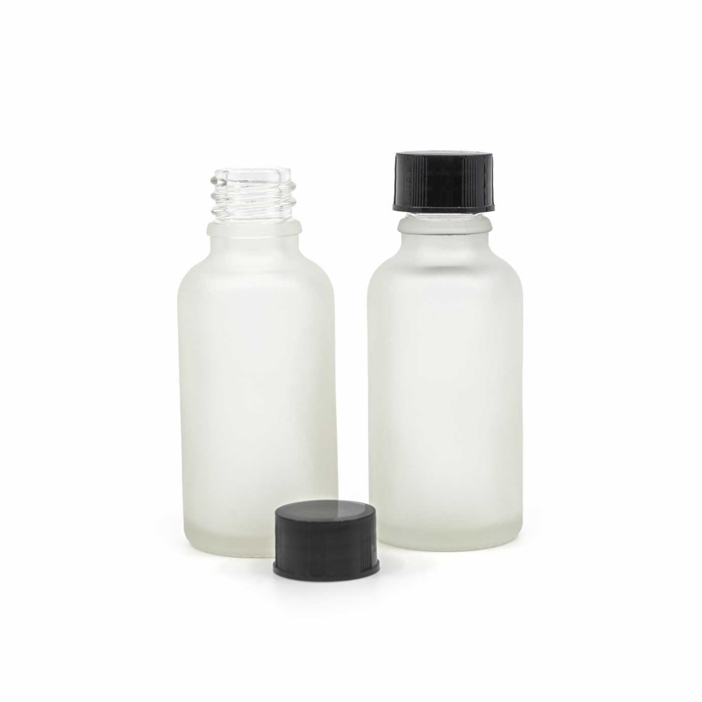 Sklenená fľaška je vyrobená z hrubého priehľadného skla, ktoré je z vonkajšej strany brúsené. Slúži na uchovávanie tekutín.Objem: 30 ml, celkový objem 35 mlVýška fľašky: 78,8 mmPriemer fľašky: 33 mmHrdlo: 18/410