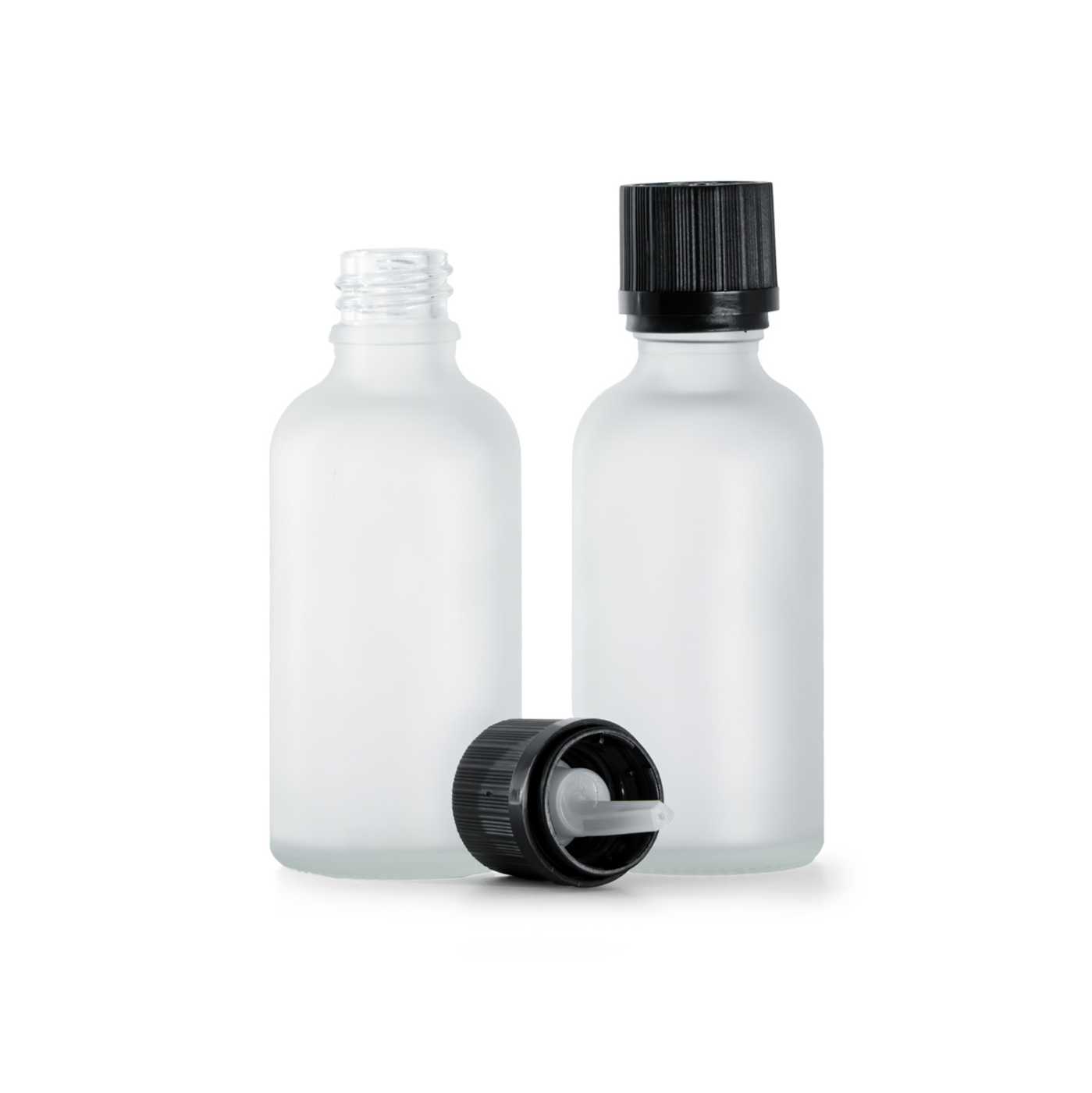 Sklenená fľaška je vyrobená z hrubého priehľadného skla, ktoré je z vonkajšej strany brúsené. Slúži na uchovávanie tekutín.Objem: 50 ml, celkový objem 55 mlVýška fľašky: 78,8 mmPriemer fľašky: 33 mmHrdlo: 18/410
