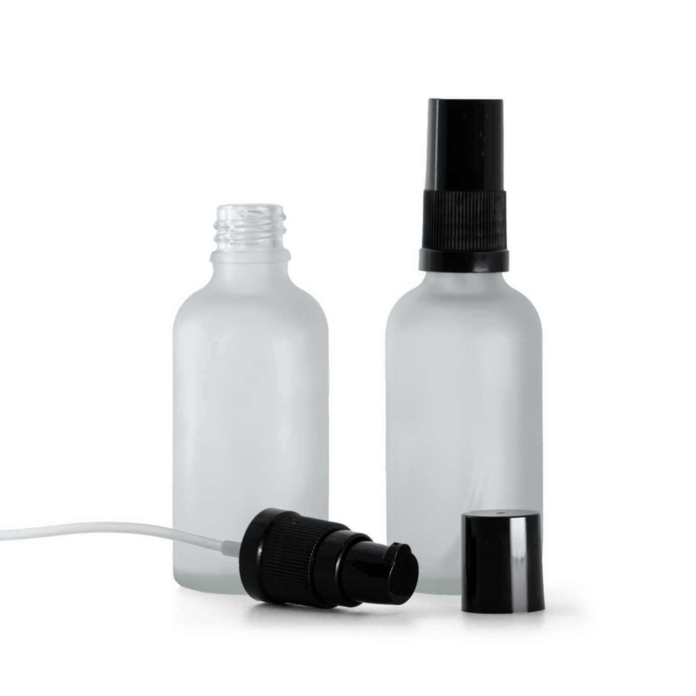 Čierny plastový dávkovač krémov s čiernym nepriehľadným uzáverom. Je vhodný na všetky naše sklenené liekovky.